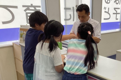 エディックでは夏期講習中、小4~小6生対象にがんばりカップを実施しています。授業に出席したり、宿題をやってきたりするごとに、シールを所定の用紙に貼っていきます。シールが決められた枚数に達するごとに、くじがひけます。くじ引きの賞品も興味を引く物が用意されています。本日もくじ引きで大いに盛り上がっていました。