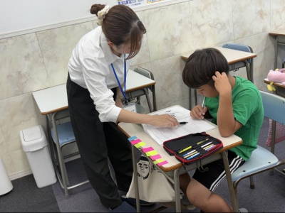 また、低学年専属講師が授業を担当することが多く、授業中の声掛けや丸付けなど低学年のお子さまに合わせた目線で指導します。この夏期講習中も、講習生が加わり元気いっぱい授業を受けてくれました!