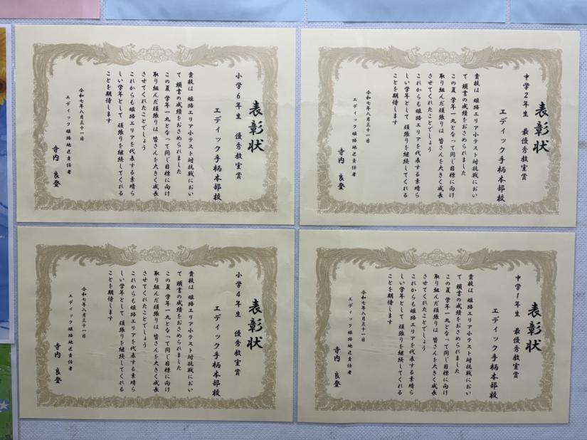エディック手柄本部校を含めた『姫路エリア』では、小テストや実力養成テストなどの点数で対抗戦を行っていました。