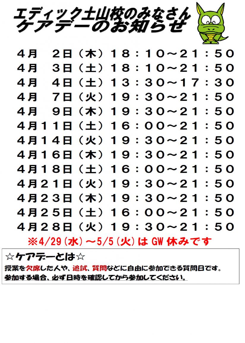 4月のケアデーの日程は上記の資料をご覧ください。