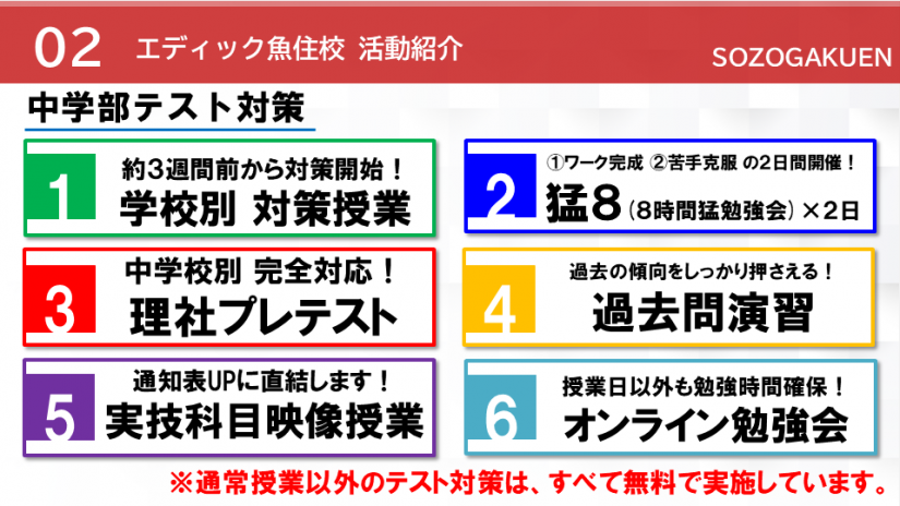 定期テストに対して万全の準備を行い、自信をもってテストに臨んでもらうために日曜日も使って対策を行います。