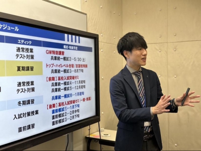 中学3年生にとって、本格的に受験に向けて動き出す大切な1年が始まります。志望校合格を勝ち取るためには、正しい情報を早期に得て、早くから受験勉強をスタートすることが不可欠です。エディックでは、”第1志望校全員合格”を目標に、年間4回の「高校進学説明会」を実施しています!